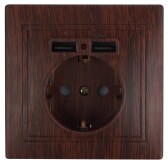 Розетка Intro Plano 1-410-06 с заземлением 2P+E Schuko со шторками, 16А-250В + 2хUSB 5В-2,1А, IP20,