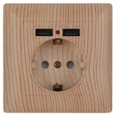 Розетка Intro Solo 4-410-11 с заземлением P+E Schuko со шторками, 16А-250В + 2хUSB, IP20, СУ, сосна