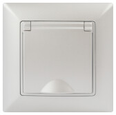 Розетка Intro Solo 4-203-06 с заземлением 2P+E Schuko с крышкой, 16А-250В, IP20, СУ, перламутр