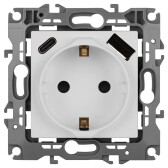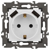 Розетка ЭРА Elegance 14-4109-01М 2P+E 16A-250В, штор. с 2xUSB 5В-3А, белый матовый