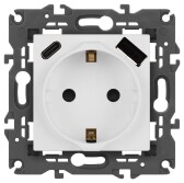 Розетка ЭРА Elegance 14-4108-01М 2P+E 16A-250В со шторками с USB type-A+C 5В-3А белый матовый