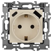 Розетка ЭРА Elegance 14-4108-02 2P+E 16A-250В, со шторками, с USB type-A+C 5В-3А, слоновая кость