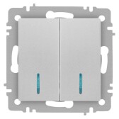Выключатель двойной с подсветкой, 10А-250В, IP20, СУ, Accent, алюминий