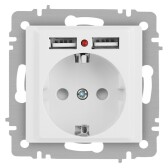 Розетка P+E Schuko со шторками, 16А-250В + 2хUSB, IP20, СУ, Accent, белый матовый
