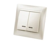 Выключатель 2-клавишный с подсветкой, 10А, серебряный