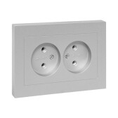 Эпика Механизм розетки двойной, 16А, без заземления, без шторок, с рамкой, алюминий EKF