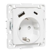 Эпика Механизм розетки с USB-A+С-2шт, 16А, с заземлением, с защ. штор., белый EKF
