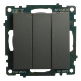 Выключатель 3-клавишный (механизм), 250В, 10А, Эмили, RSW10-5108-05, черный уголь, soft touch