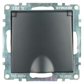 Розетка 1-местная с крышкой с защ. штор (механизм) с/з, 250В, 16А, Катрин, GLS16-7112-06, графит