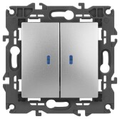 14-1105-03 ЭРА Выключатель двойной с подсветкой, 10АХ-250В, IP20, Эра Elegance, алюминий (10/100/160