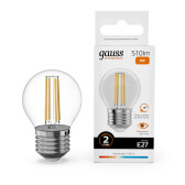 Лампа Gauss Filament Elementary Шар 8W 510lm 2700К Е27 LED 1/10/100