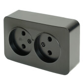 Розетка 2-местная б/з открытой установки, 250В, 10А, IP20, София, черный матовый, MST10-12-05