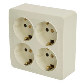Розетка 4-местная с/з открытой установки, квадрат, 250В, 16А, IP20, София, слоновая кость, MST16-14S