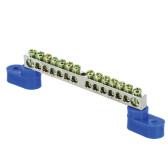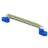 Шина "0" N (6x9мм) 10 отв. цинк 2 синих угловых изолятора EKF