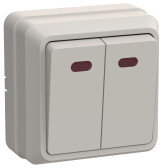 Выключатель двухклавишный открытой установки с подсветкой 10А слоновая кость "Ладога"