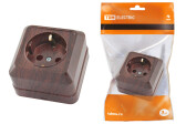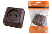 Розетка с заземлением открытой установки с защитными шторками 16А, бук "Ладога"