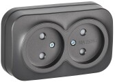 GLORY Розетка 2-местная о/у без з/к с з/ш 10А РСш22-2-ХСм сталь матовый IEK