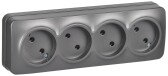 GLORY Розетка 4-местная о/у без з/к и з/ш 10А РС24-2-ХСм сталь матовый IEK