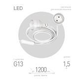 Патрон ЭРА FITO-Holder G13 IP65 mini для ламп FITO до 600 мм 2хG13 с выключателем, вилкой 1.5 м