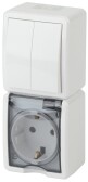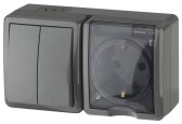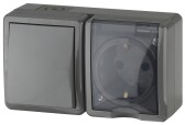 11-7402-03 ЭРА Блок розетка+выключатель двойной IP54, 16A(10AX)-250В, ОУ, Эра Эксперт, серый (8/80/1
