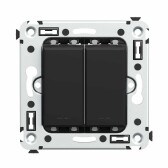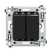 Выключатель двухклавишный в стену, "Avanti", "Черный матовый"