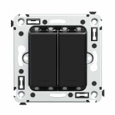 Выключатель двухклавишный в стену, "Avanti", "Черный квадрат"