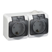 БЛОК 2-АЯ РОЗЕТКА С ЗАЗЕМЛЕНИЕМ, СО ШТОРКАМИ, IP44, Серый "Этюд"
