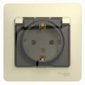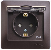 GLOSSA РОЗЕТКА с заземлением со шторками с крышкой, 16А, IP20, в сборе, АНТРАЦИТ