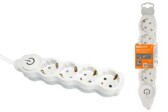 Удлинитель бытовой "Люкс" УЛ5 5 гнезд, 1,5м, б/з, с з/ш, ПВС 2х0,75 мм2 10А/250В бело-серый TDM
