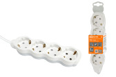 Удлинитель бытовой "Люкс" УЛ4 4 гнезда, 1,5м, б/з, с з/ш, ПВС 2х0,75 мм2 10А/250В бело-серый TDM