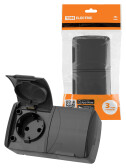 Розетка двойная 2П+3 открытой установки IP54 16А с крышкой серая "Селигер" TDM